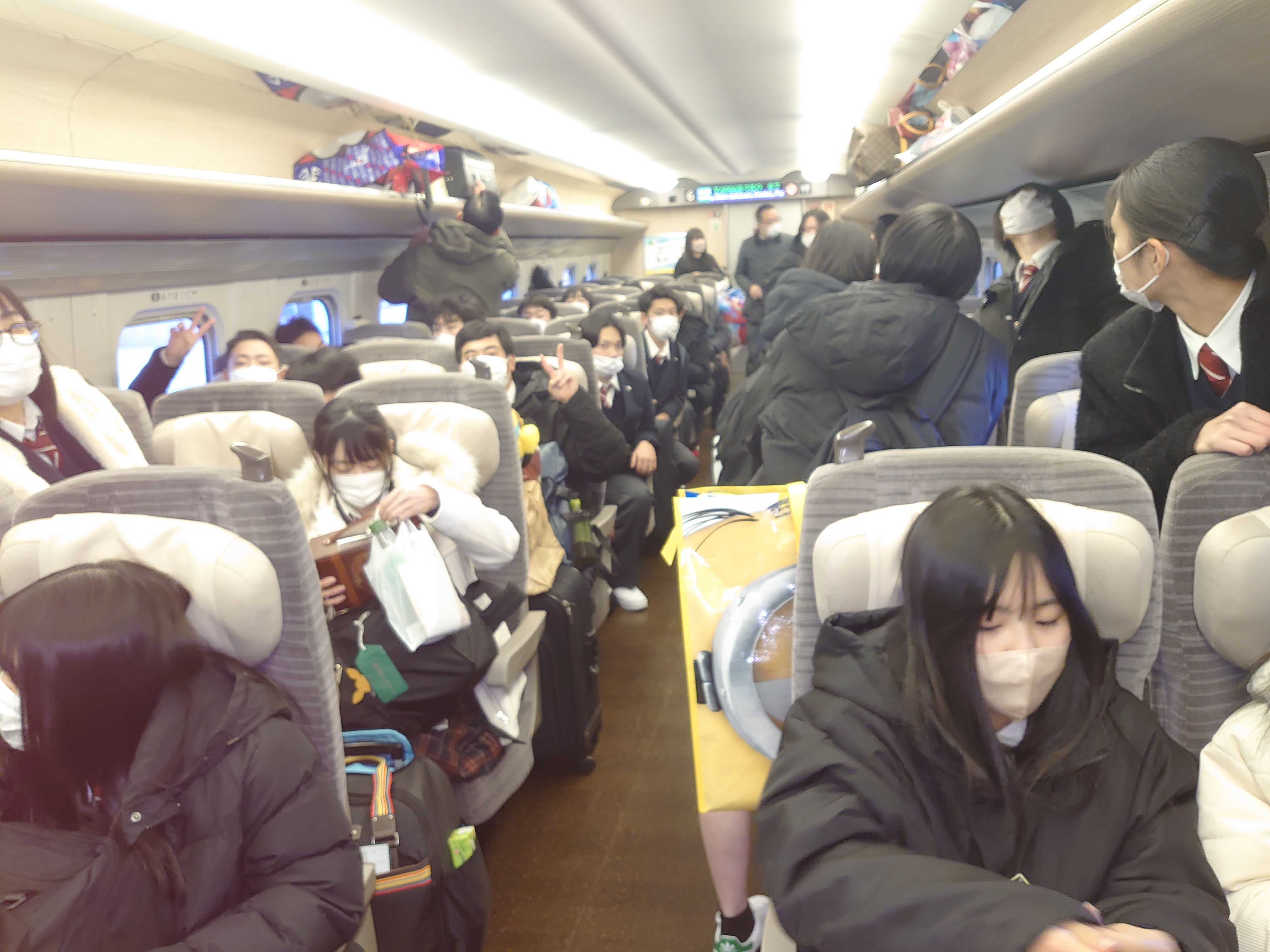 最後の力を振り絞り、全員が無事古川行きの新幹線に 乗車することができました。さすがに疲労が隠せないようで、 半目を開けて寝ている生徒や青白さを通り越して銀色の顔色 をした生徒もおりました。