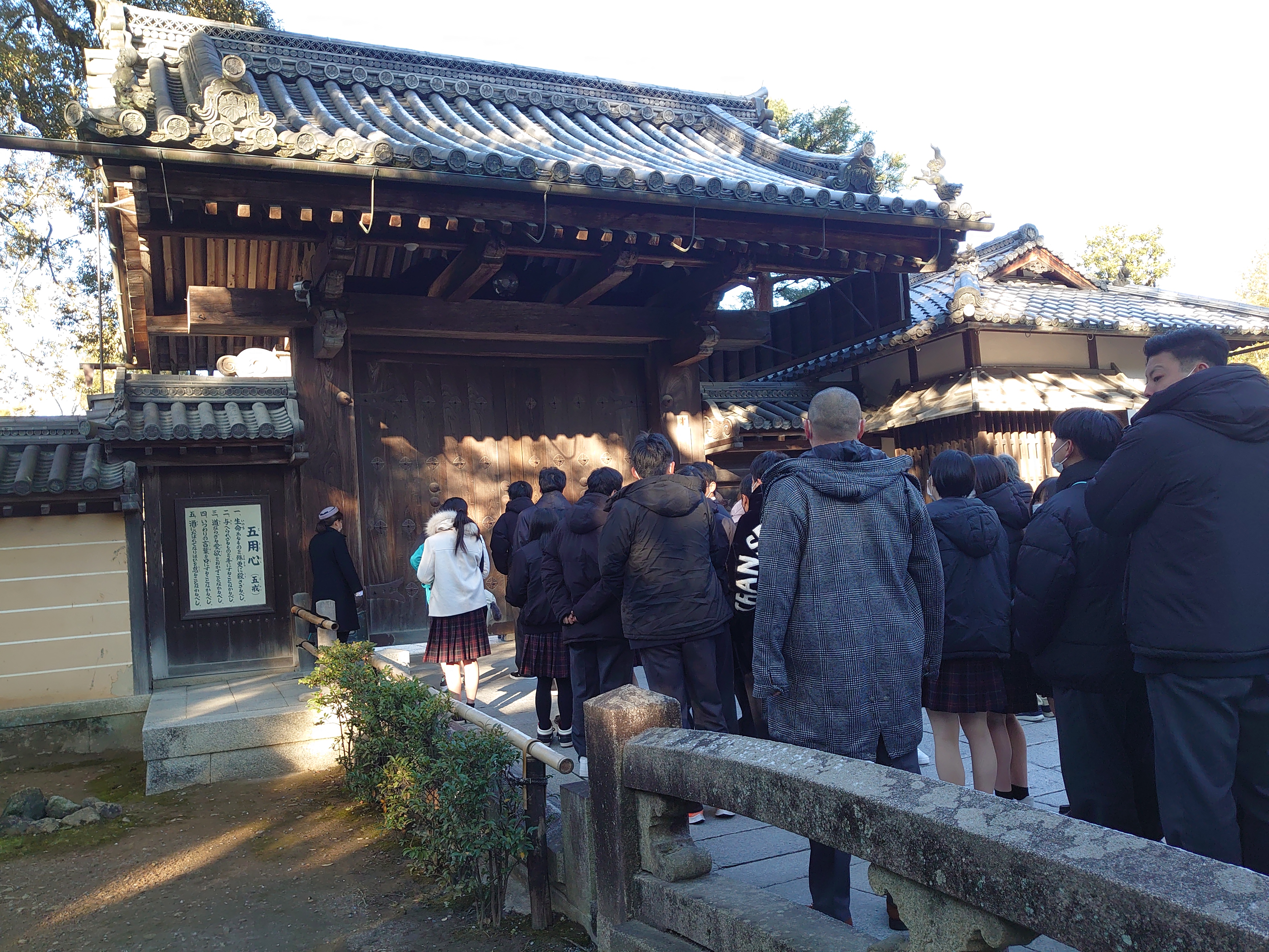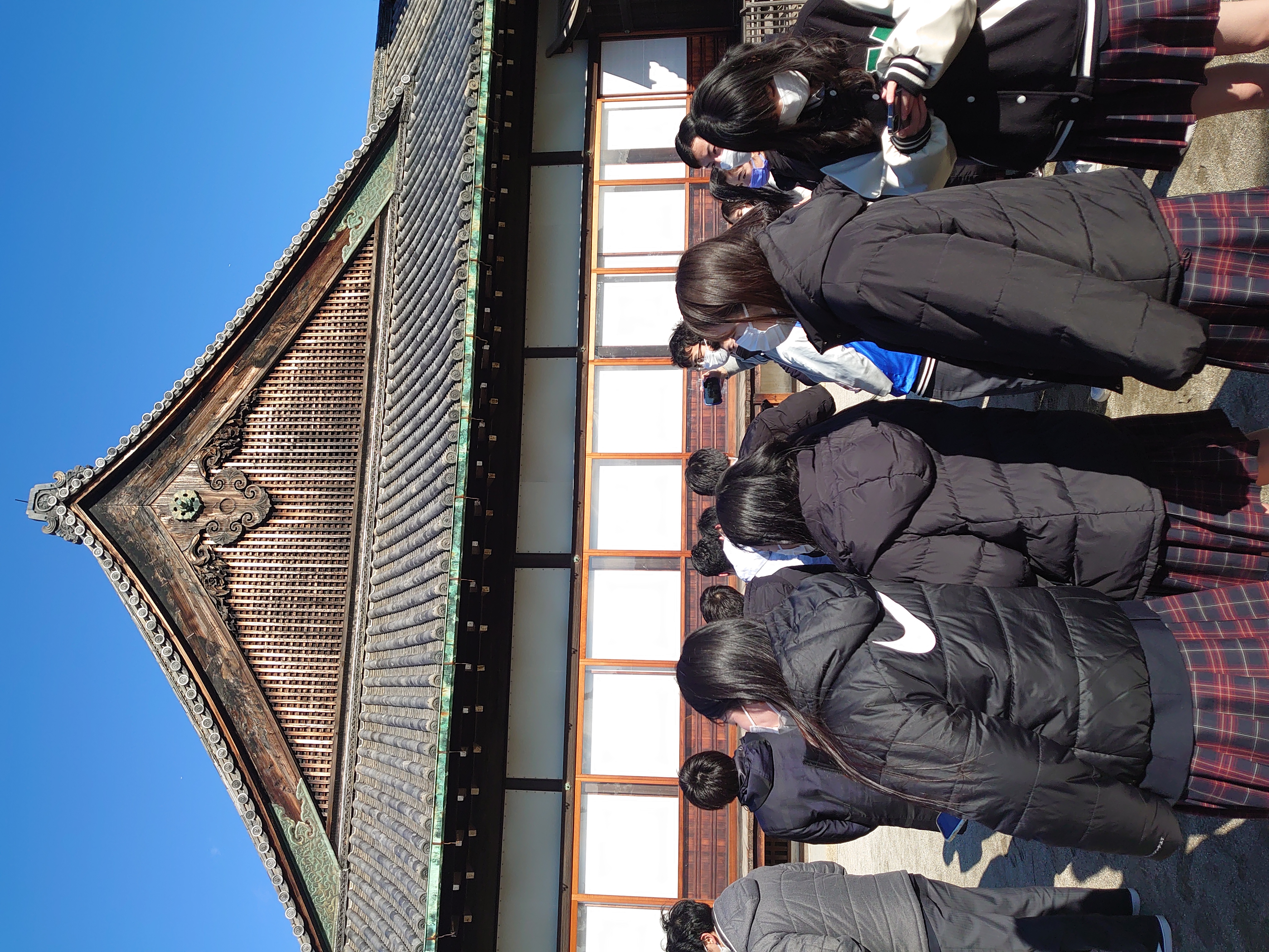 修学旅行最終日。生徒、教員の疲労もピークを迎えていますが、 心配していた体調不良者もなく、全員揃って朝食をいただきました。 天気も快晴。初志貫徹、これもひとえに団長の日頃の行いのおかげ 以外の何物でもないと感じながら最後の日を迎えました。2日間 お世話になったホテルの方に代表者が御礼の挨拶をし、ホテルを後 にしました。