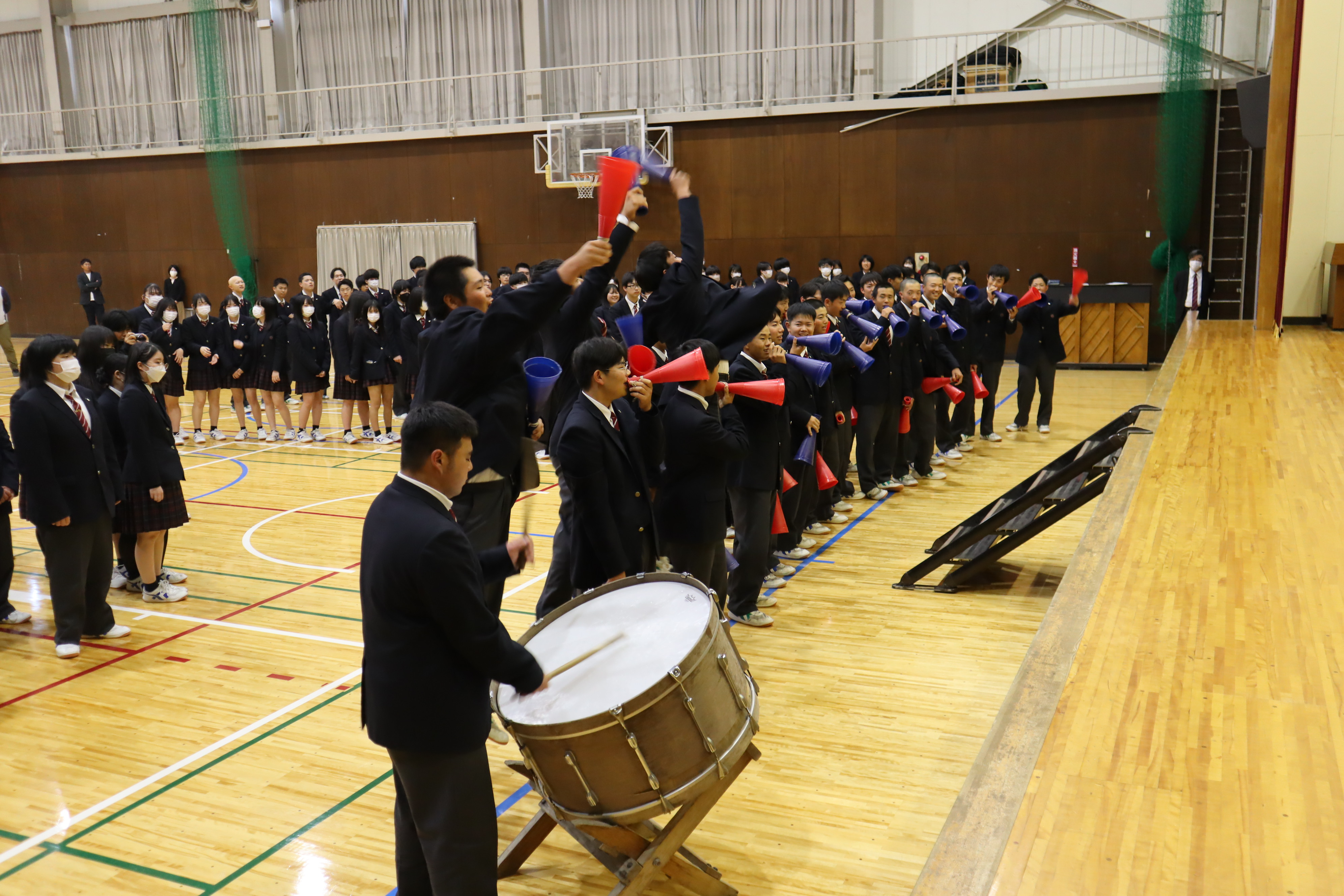 応援員会の生徒を中心に、出場する部活動へエールを