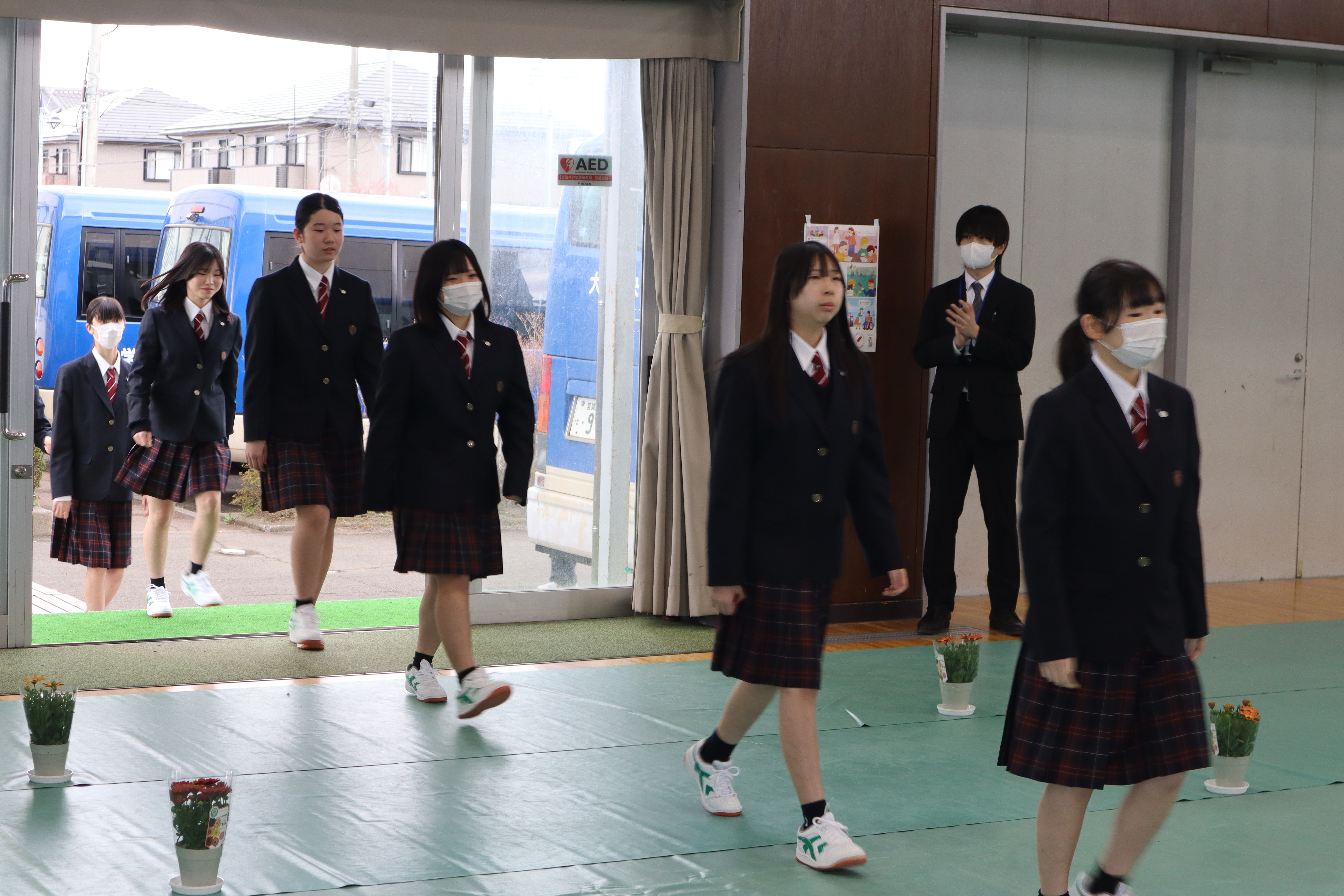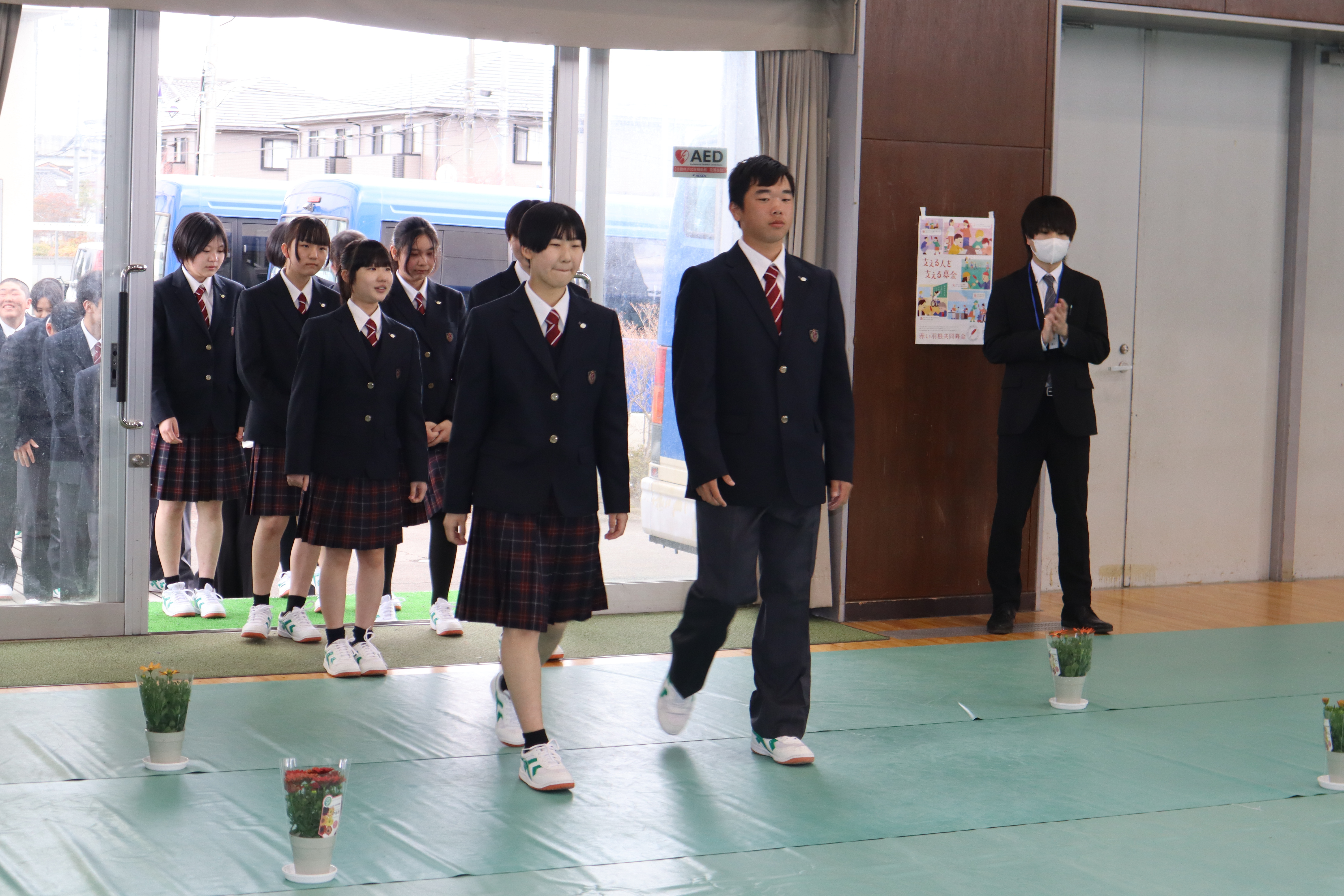 がらも希望に満ちた表情で登校しました。会場には保