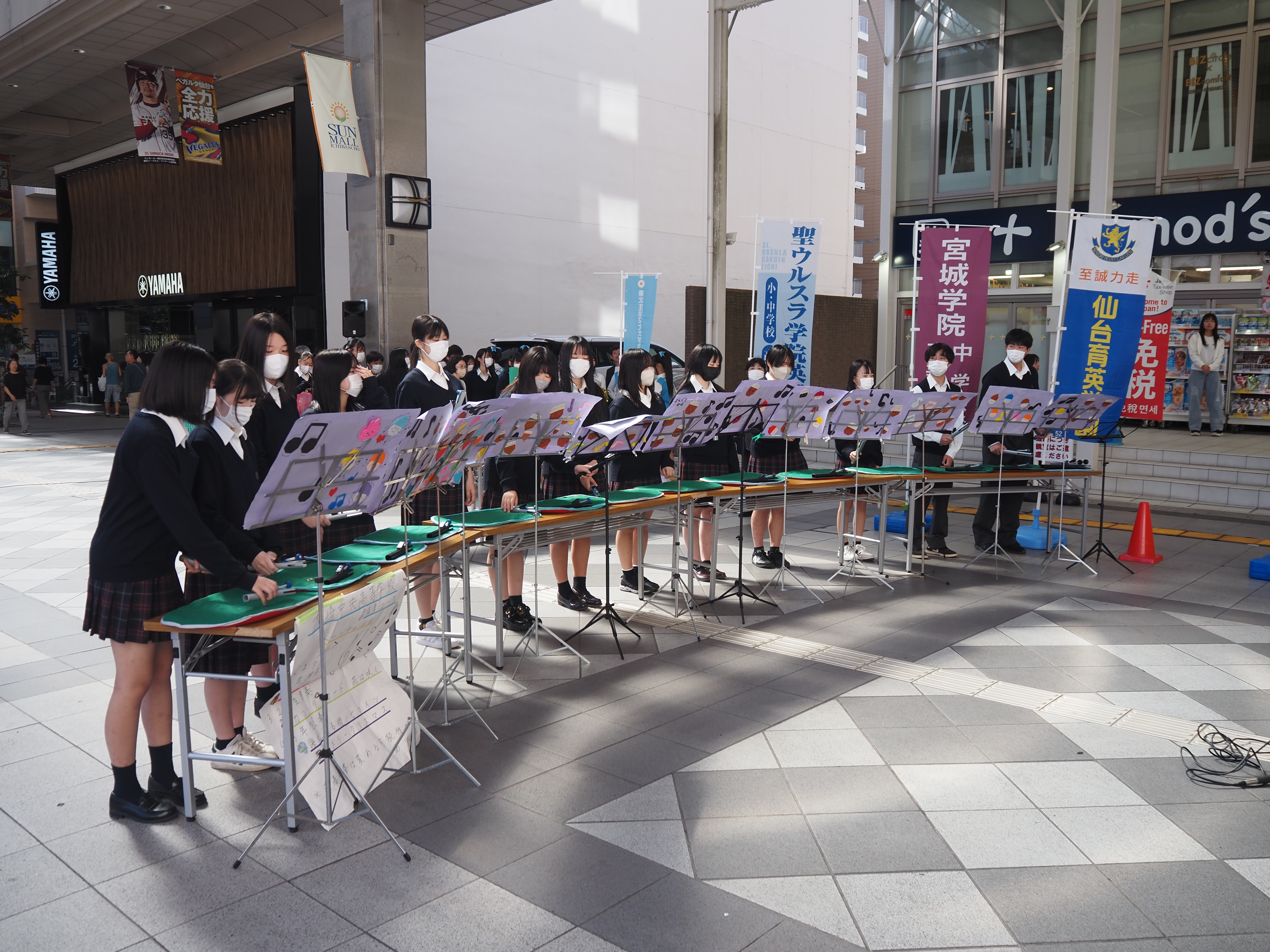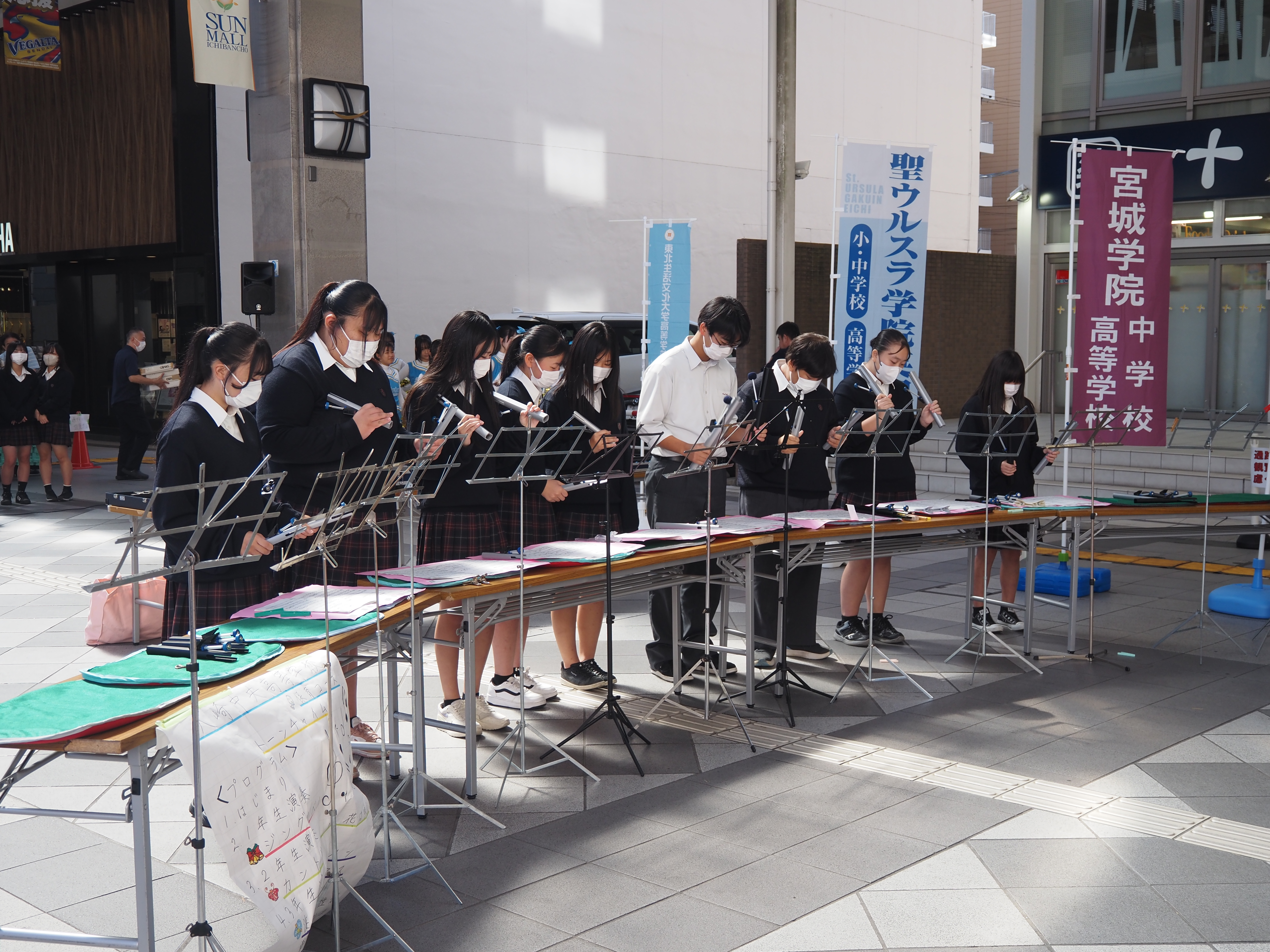 今回初めて仙台でトーンチャイムの演奏を行うことになり、生徒たちはとても緊張していましたが、演奏後には観客の皆様から温かい拍手をいただき、大きな達成感を味わうことができました。